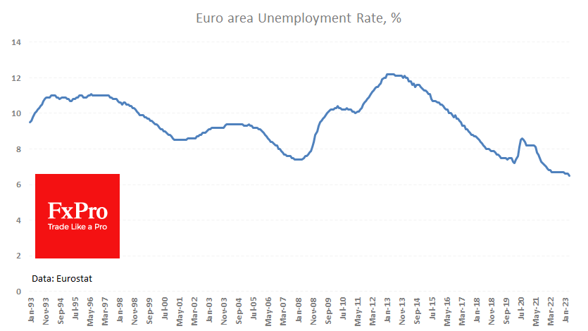 她还表示,需要评估已经实施的加息是否足够。欧洲央行的强硬立场也得到了劳动力市场数据的支持,4月份失业率降至6.5%,为1993年以来的最低水平。尽管能源价格下跌、食品价格增长放缓,但紧张的劳动力市场可能造成额外的价格压力。