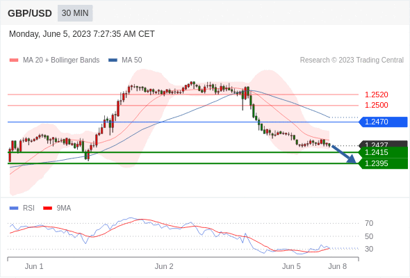 在 1.2470 之下,看跌,目标价位为 1.2415 ,然后为 1.2395 。
