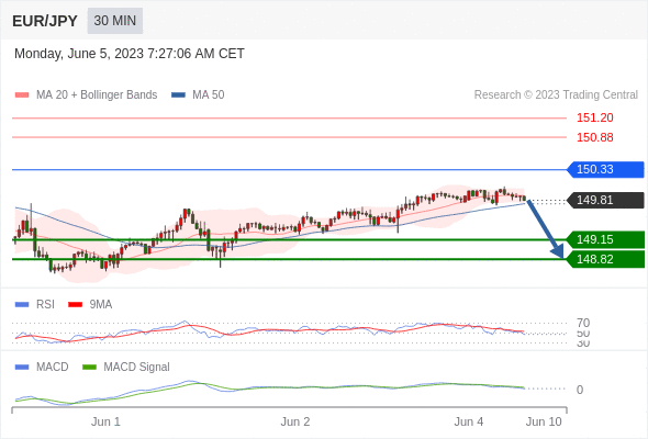 如突破 150.33 ,EUR/JPY 目标方向为 150.88 和 151.20 。