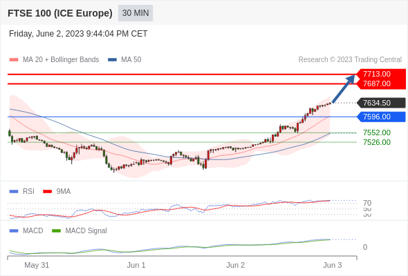 如跌破 7596 ,英国富时100指数期货 目标方向定在 7552 和 7526 。