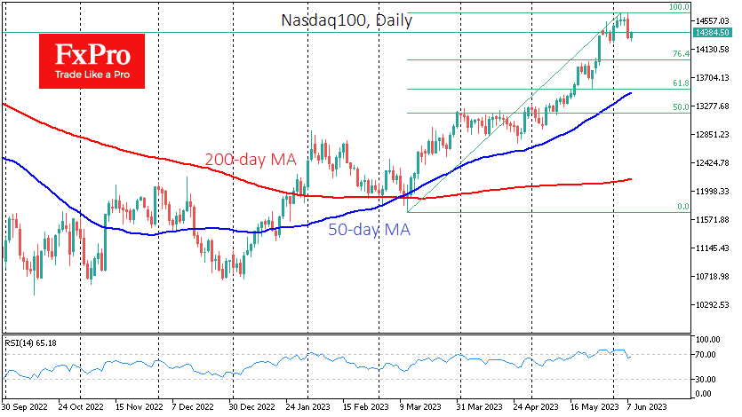 昨天的下跌可能是过热、以科技股为主的纳斯达克100指数修正的开始。从技术上讲,昨天日线图上的RSI在该指标达到2021年11月以来的最高水平后,从超买区域大幅回落。