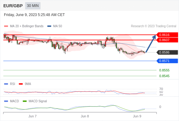 欧元/英镑 当日内: 有上涨的可能,目标价位定在 0.8616 。