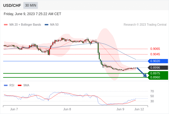 在 0.9020 之下,看跌,目标价位为 0.8975 ,然后为 0.8960 。