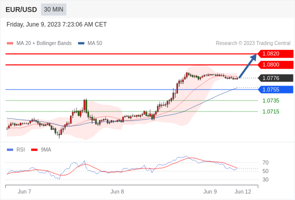 在 1.0755 之上,看涨,目标价位为 1.0800 ,然后为 1.0820 。