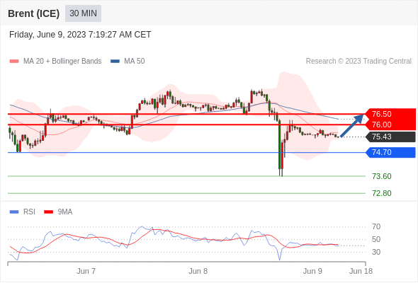 在 74.70 之上,看涨,目标价位为 76.00 ,然后为 76.50 。