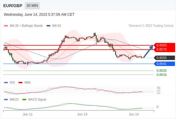 欧元/英镑 当日内: 有上涨的可能,目标价位定在 0.8583 。