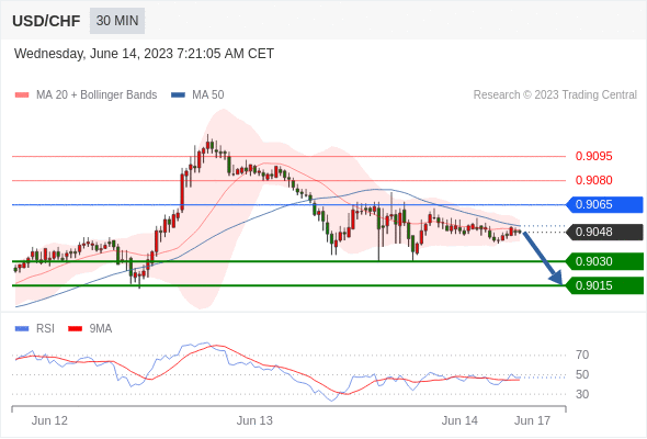 在 0.9065 之下,看跌,目标价位为 0.9030 ,然后为 0.9015 。