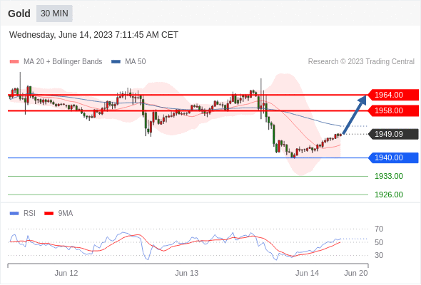 在 1940.00 之上,看涨,目标价位为 1958.00 ,然后为 1964.00 。