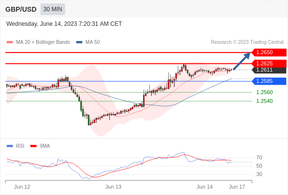 在 1.2585 之上,看涨,目标价位为 1.2625 ,然后为 1.2650 。