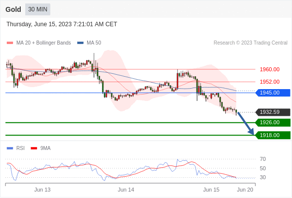 在 1945.00 之下,看跌,目标价位为 1926.00 ,然后为 1918.00 。