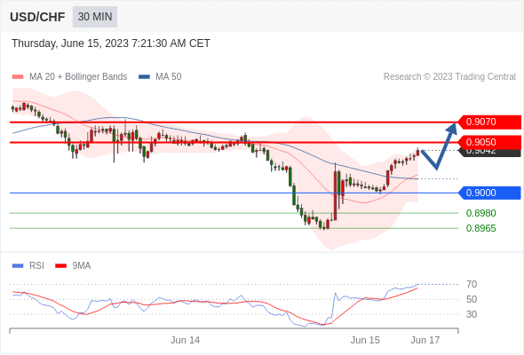 在 0.9000 之上,看涨,目标价位为 0.9050 ,然后为 0.9070 。