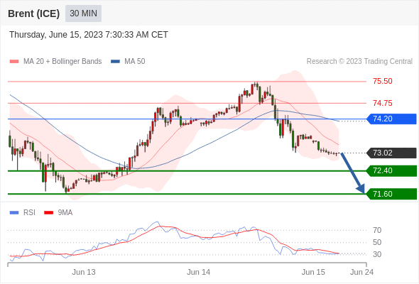 布伦特原油 (ICE)? (Q3)? 当日内: 存在压力。