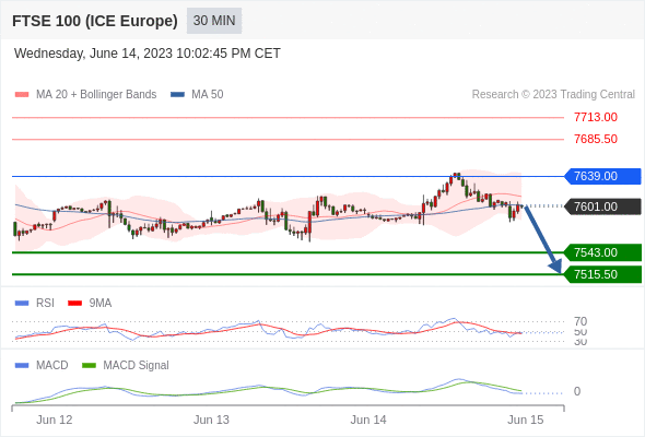 英国富时100指数期货 当日内: 看跌,在 7639.00 之下。