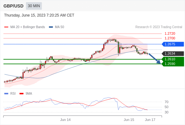 在 1.2675 之下,看跌,目标价位为 1.2610 ,然后为 1.2590 。