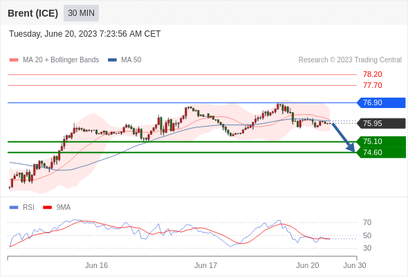 在 76.90 之下,看跌,目标价位为 75.10 ,然后为 74.60 。