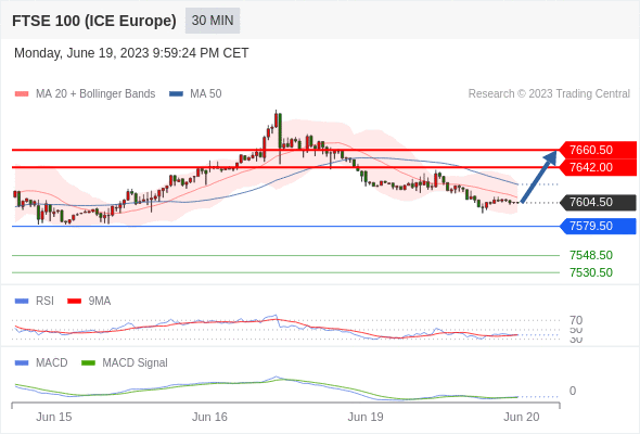 如跌破 7579.50 ,英国富时100指数期货 目标方向定在 7548.50 和 7530.50 。