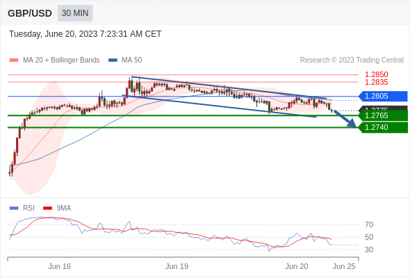 在 1.2805 之下,看跌,目标价位为 1.2765 ,然后为 1.2740 。