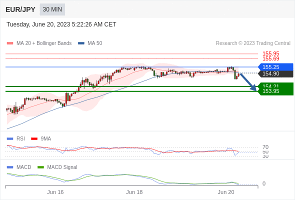 欧元/日元 当日内: 看跌,在 155.25 之下。