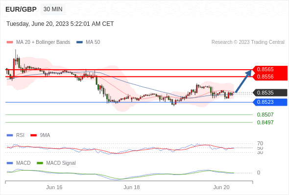 欧元/英镑 当日内: 调整至 0.8523 处,在反弹上升之前。