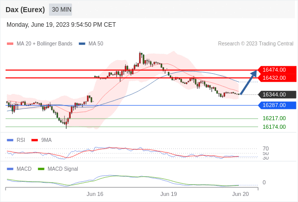 如跌破 16287 ,德国DAX指数期货 (Eurex) 目标方向定在 16217 和 16174 。