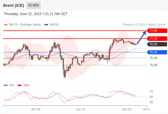 在 76.30 之上,看涨,目标价位为 77.25 ,然后为 77.80 。