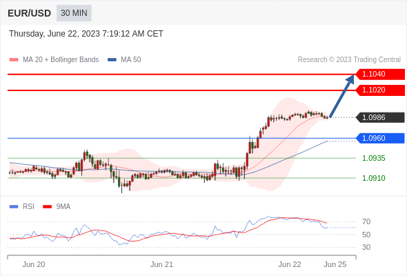 在 1.0960 之上,看涨,目标价位为 1.1020 ,然后为 1.1040 。