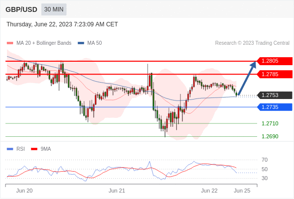 在 1.2735 之上,看涨,目标价位为 1.2785 ,然后为 1.2805 。