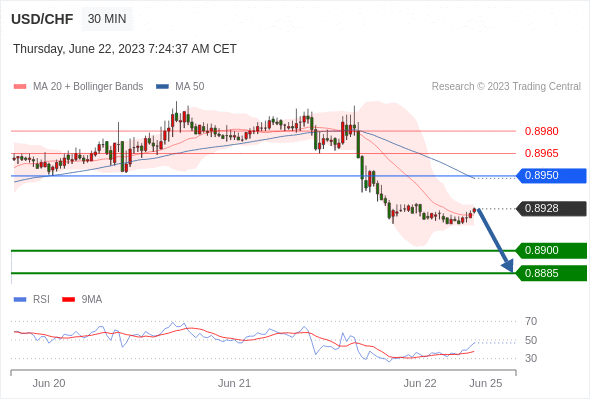在 0.8950 之下,看跌,目标价位为 0.8900 ,然后为 0.8885 。