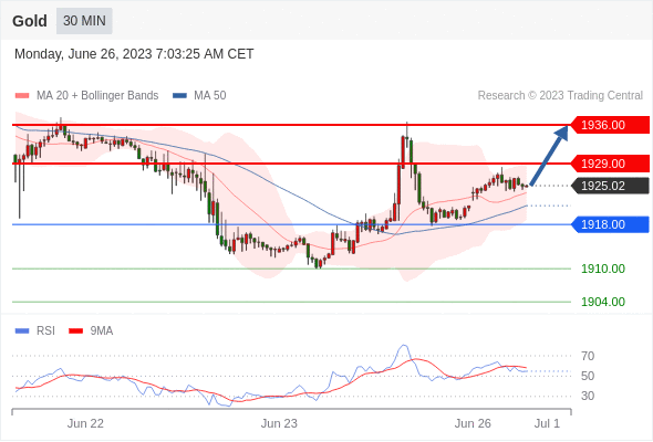 在 1918.00 之上,看涨,目标价位为 1929.00 ,然后为 1936.00 。