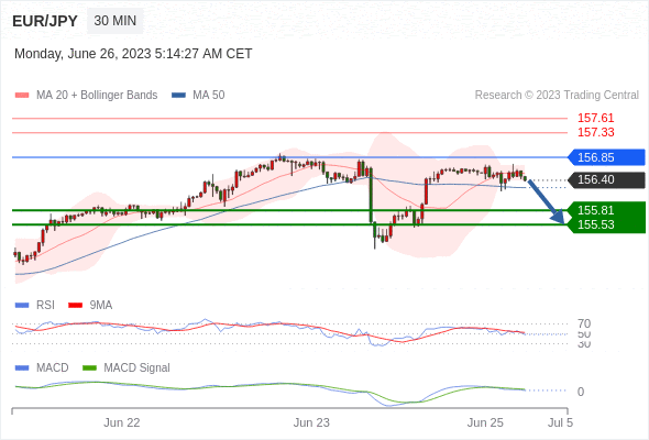 如突破 156.85 ,EUR/JPY 目标方向为 157.33 和 157.61 。