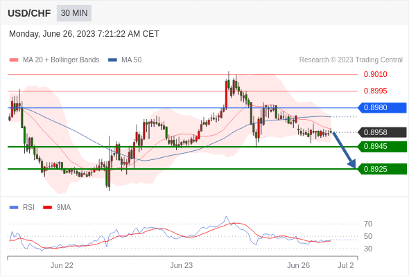 在 0.8980 之下,看跌,目标价位为 0.8945 ,然后为 0.8925 。