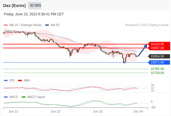 RSI技术指标低于50。 MACD技术指标呈现看跌状态并 处在其信号线的上方。 此外,价位处在其20个时期及50个时期移动平均线下方 ( 当前是 15965.95 和 16019.22 )。