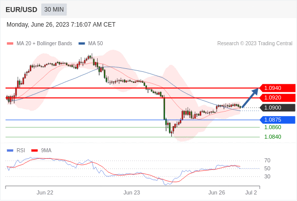 在 1.0875 之上,看涨,目标价位为 1.0920 ,然后为 1.0940 。