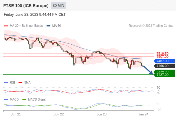 英国富时100指数期货 当日内: 看跌,在 7487.00 之下。