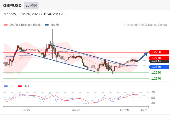 在 1.2710 之上,看涨,目标价位为 1.2740 ,然后为 1.2760 。