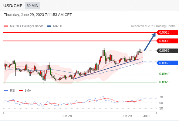 在 0.8960 之上,看涨,目标价位为 0.9000 ,然后为 0.9015 。
