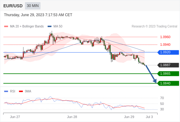 在 1.0920 之下,看跌,目标价位为 1.0865 ,然后为 1.0840 。