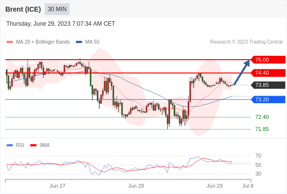 在 73.20 之上,看涨,目标价位为 74.40 ,然后为 75.00 。