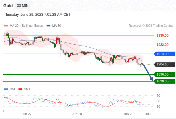 在 1914.00 之下,看跌,目标价位为 1896.00 ,然后为 1890.00 。