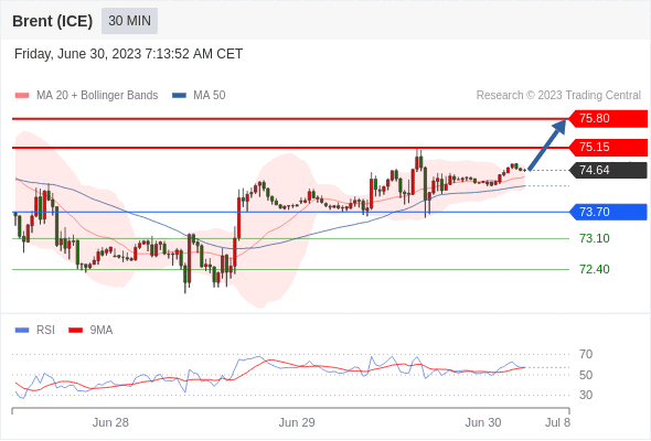 在 73.70 之上,看涨,目标价位为 75.15 ,然后为 75.80 。