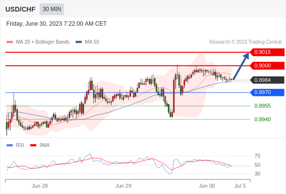 在 0.8970 之上,看涨,目标价位为 0.9000 ,然后为 0.9015 。