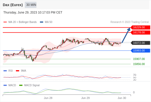 如跌破 15993 ,德国DAX指数期货 (Eurex) 目标方向定在 15907 和 15856 。