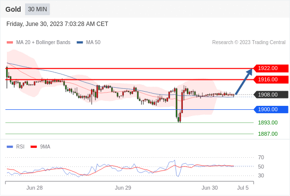 在 1900.00 之上,看涨,目标价位为 1916.00 ,然后为 1922.00 。