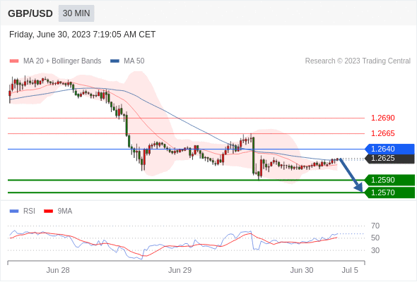在 1.2640 之下,看跌,目标价位为 1.2590 ,然后为 1.2570 。