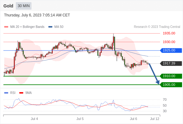 在 1925.00 之下,看跌,目标价位为 1910.00 ,然后为 1905.00 。