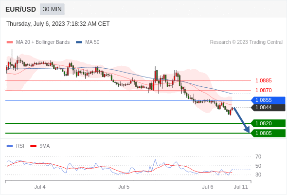 在 1.0855 之下,看跌,目标价位为 1.0820 ,然后为 1.0805 。