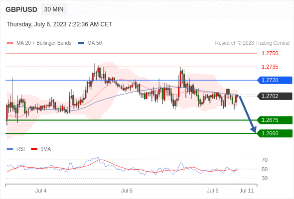 在 1.2720 之下,看跌,目标价位为 1.2675 ,然后为 1.2660 。