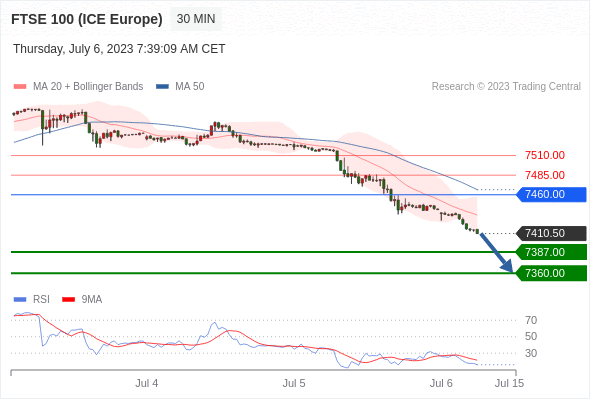 在 7460.00 之下,看跌,目标价位为 7387.00 ,然后为 7360.00 。