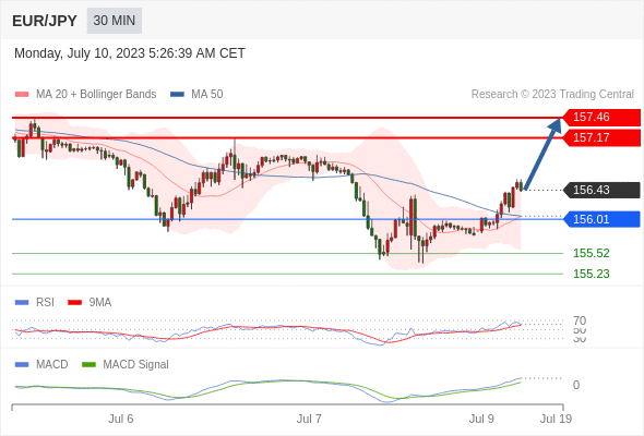 欧元/日元 当日内: 看涨,当 156.01 为支撑位。