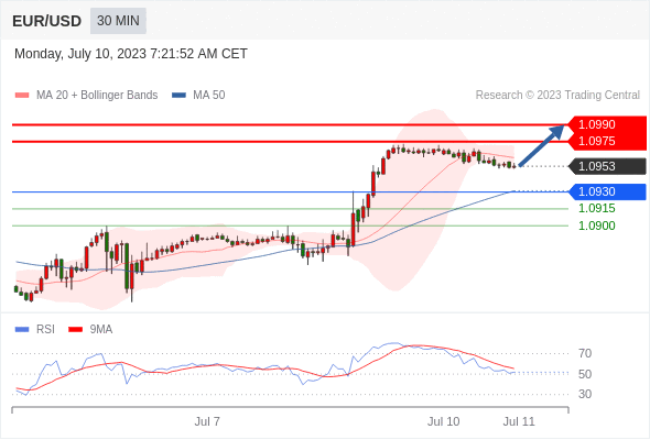在 1.0930 之上,看涨,目标价位为 1.0975 ,然后为 1.0990 。